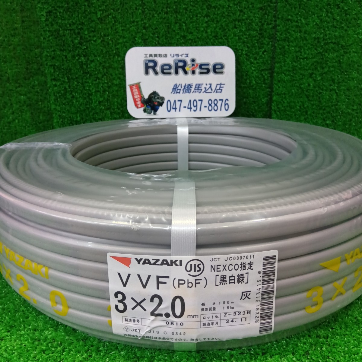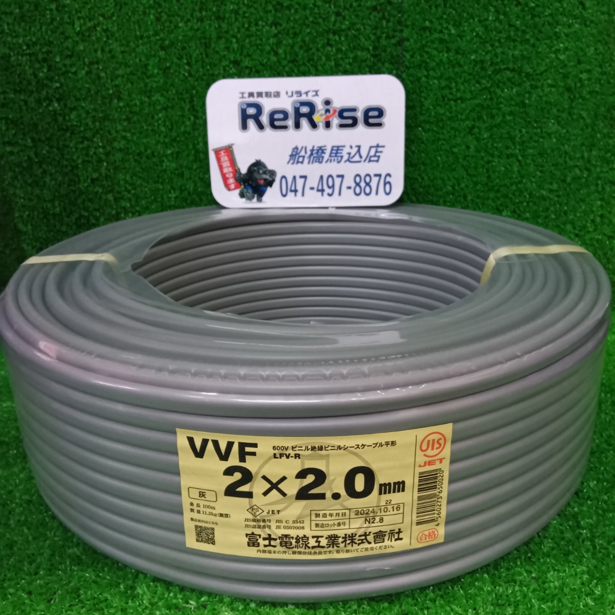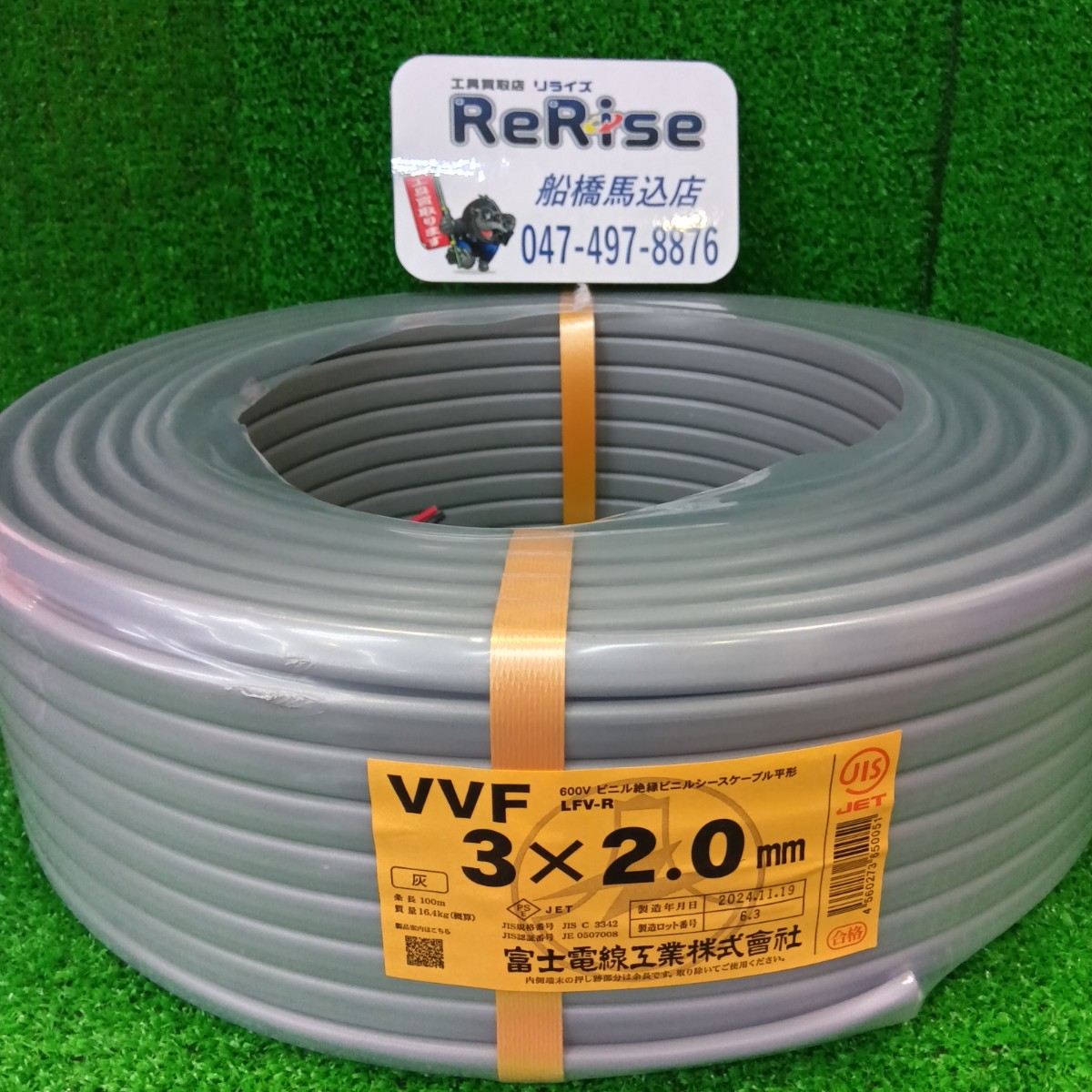 - 富士電線 VVFケーブル 3×2.0mm(黒白赤)灰 100m VVF203